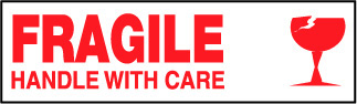 FRAGILE HANDLE WITH CARE - WHITE TAPE WITH RED PRINT