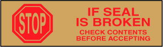 STOP IF SEAL IS BROKEN TAPE - TAN TAPE WITH RED PRINT